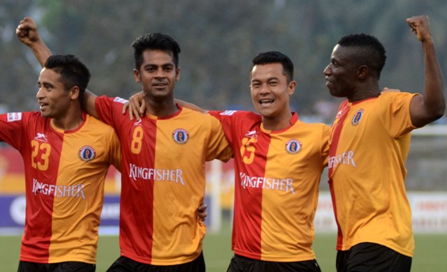KOLKATA: Kingfisher East Bengal soared up to the second spot in the Hero I-League table following today’s win over Salgaocar FC with Mohammed Rafique (38′) opening the scoring before Darryl Duffy (65′) grabbed an equaliser, finally, Bello Rasaq (83′) headed in a late goal to register their 5th win in the ongoing Hero I-League 2015-16.