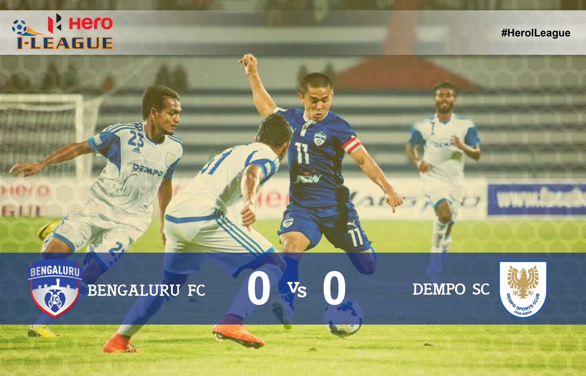 Match no 1 saw defending I-League Champions Bengaluru FC take on Dempo SC at the newly-renovated Sree Kanteerava Stadium in Bangalore. Much was expected of the game, owing to the fact that BFC had beaten Dempo a week before in the final of the Hero Federation Cup. However, the scoreline of the game was a goalless draw, which probably no one anticipated.