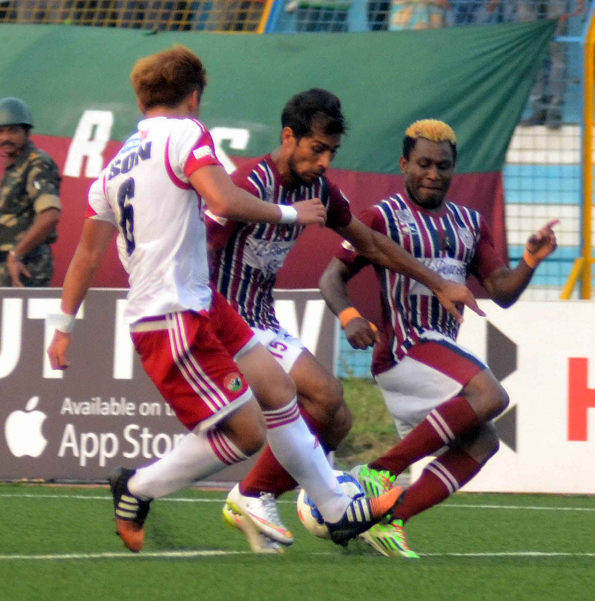 Table toppers McDowell’s Mohun Bagan forwards cut into the attacking third quite often but could not infiltrate Shillong Lajong defence. Balwant, Sony Norde synchronised well and put the Shillong defence under huge pressure, though the goal was eluding them. Shillong Lajong responded well with their impeccable counterattacks and Cornell Glen was most threatening amongst all. Seitya, Len supported him well and introduced more venom into the attack. Debjit, Bagan goalie has another brilliant day in the office and officials did not mistake to choose him as the Hero MoM.