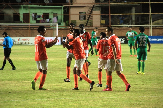 The opening stages of the game were dominated by the away side and their efforts were rewarded with a peach of a result as Pratesh Shirodkar scored one from 25-yards out. Karanjit Singh palmed away Rowllin Borges’ corner which fell kindly for the medio who put his laces through it leaving the Salgaocar goalie flat-footed.